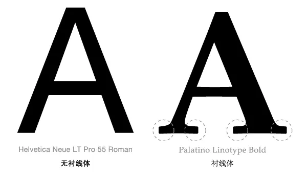 衬线,是指笔画末端的装饰线,是区分不同英文字体最显著的特征。有衬线的字体叫做衬线字体(Serif),而没有的则是非衬线(Sans-Serif)。(「Serif」意为「衬线」,「Sans」在法文中意为「没有」)
