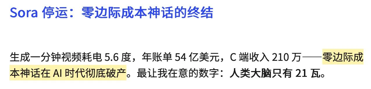 之前大火的Sora也停了。之前总讲互联网时代边际成本非常低,所以用户越多成本越低利润越高,然而到目前各种工具全面拥抱AI功能后,由于每个用户都需要自己的AI算力,每个增加的新用户都会增加相当一定量的算力消耗,导致边际成本出现一个始终无法降低的最低值。由此扩展一下,可能到某个时候开始,盲目增加用户数量不再可取,而是尽量争取少量(或稳定数量)的长期优质客户,兴许更能保持长期稳定的盈利。
